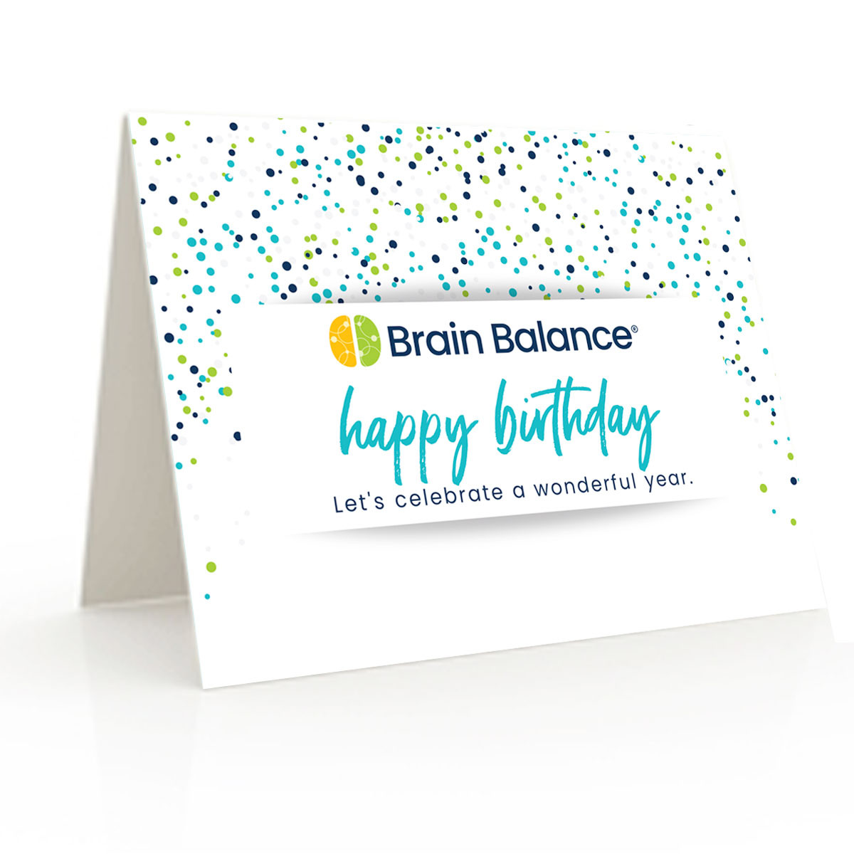 Brain Balance card set. Features a custom 6" x 4.5" holiday card with your center info printed on the back and matching blank A6 envelopes.